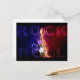 Postal de música de guitarra eléctrica con llamas de rock en rollo.