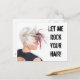 Postal de salón/peluquero con un fauxhawk de plástico y rojo. ¡Déjame ROCK tu pelo!