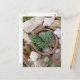 Arojamiento de jardín en una maceta florida con cactus, rocas y conchas.