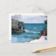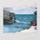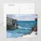 Una postal con la pintura acuática de arte fino de Winslow Homer titulada, Rocky Shore, Bermudas (1900). Una cala en el Caribe con un agua azul brillante y acantilados rocosos.