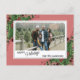 Única, clásica, moderna, bonito y decorativa tarjeta de vacaciones. Cute Happy Holidays saludo texto y habitación para personalizar o personalización con una foto, nombre de familia (o nombres individuales) y mensaje de su elección. Enmarcado por bayas rojas de vino de Borgoña y ramos de flores de color verde oscuro sobre un elegante fondo de coral rojo.