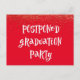 Sobre un brillante fondo rojo, he colocado un gráfico que dice "Postponed Graduation Party" en un tipo de letra kooky, divertida y audaz. Desde arriba, el confetti de oro simulado parece caer desde arriba. Al revés he colocado campos de plantilla para que puedas añadir tus propios detalles personales. Cambie cualquiera de estos elementos como considere oportuno. También puede cambiar el tipo de letra en la parte posterior, y el color de fondo, si lo desea. // 44 //