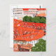 Postal con colorido paisaje urbano europeo, techos de baldosas rojas y de terracota de Praga. Arte de medios mixtos - collage de papel tisular, pluma de tinta, marcadores acrílicos y acuarela. limón