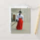 Vestimenta japonesa tradicional que se usa en el santuario Shinto Tsurugaoka Hachiman-gū, Kamakura, Japón - postal totalmente personalizable.