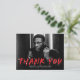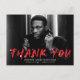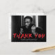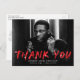 Elegante, moderno y de graduación gracias a la postal que presenta la foto horizontal del graduado con "Gracias" en letras rojas con salpicaduras de pintura blanca. Personalice la parte delantera de la tarjeta postal de agradecimiento agregando el nombre del graduado, el nombre de la escuela y el año de graduación. En la parte posterior de la graduación gracias a la tarjeta postal se muestra su dirección de retorno y el espacio para un mensaje de agradecimiento escrito a mano o con tipeo.