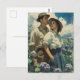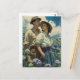 La vintage postal captura una escena atemporal con una pareja de pie en un exuberante campo de hortensias. Los colores son silenciosos, lo que le da una calidad suave y nostálgica a la imagen. La pareja, elegantemente vestida, comparte un momento tranquilo en medio de las hortensias florecientes, creando un ambiente romántico e idílico. Los detalles de las flores y el atuendo de la pareja evocan una sensación de otra época, lo que lo convierte en una encantadora instantánea de una época más simple.