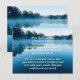 Esta es una tarjeta postal cristiana de memorización o meditación de versículos bíblicos que presenta un lago azul en la mañana. La tarjeta incluye Romanos 10:9-10 que dice "Que si confiesas con tu boca, 'Jesús es Señor', y crees en tu corazón que Dios lo levantó de entre los muertos, serás salvo. Porque con el corazón se cree para justicia, y con la boca se confiesa para salvación". Esta es la herramienta perfecta para ayudarte a memorizar o meditar en las Escrituras. Todo el versículo y su dirección están en un lado, mientras que solo la dirección del versículo bíblico está en el otro.