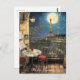 Postal Romantic Paris France Eiffel Tower Illustration