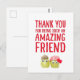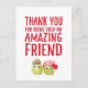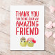 Send plant-based love to a special friend on Valentine’s Day with this cute vegan card. Two quirky veggie characters and bold hand-lettered text say “Thank you for being such an amazing friend” in a fun, modern way. Personalize the inside to add your own friendship message or Galentine’s note. Enjoy!