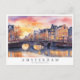 Postal Romántico Sunset Amsterdam Canal Watercolor Travel