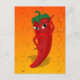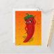 Una linda pimienta personalizado en un rompecabezas. Fondo rojo y amarillo. Diseño original. Postales personalizados. Idea de regalo para los amantes de las comidas picantes.