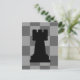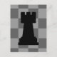 Un tablero de ajedrez de dos tonalidades con un rook sobre él. Negro, blanco, gris, cuadrados, juego de mesa