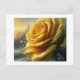 Una representación de una rosa amarilla, vívida y agitada, llama la atención con pinceles dinámicos y colores radiantes. La luz ilumina los pétalos, realzando sus tonos vibrantes con un fondo dramático.