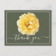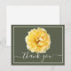 Impresionante fotografía de primer plano de una hermosa flor de rosa amarilla con gotas de rocío de la mañana temprana contra un fondo verde musgo. La flor cubre la parte delantera de esta postal que se puede utilizar como tarjeta de agradecimiento, tarjeta de cumpleaños o cualquier otra tarjeta de su elección. ¡Personalícela con su texto y/o imágenes para hacerla única!