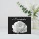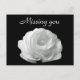 Postal de "Te extrañas" con una hermosa foto de una sola rosa blanca sobre un fondo negro. Para encontrar otros elementos que contengan esta imagen, visite la tienda Photo_Genesis de Zazzle.