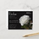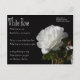 Una elegante rosa blanca sobre un fondo de medianoche. Complementado con poema.