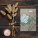 White Rose es un pincel de estilo tradicional chino "gongbi" con acuarela y tinta sobre papel de arroz. China tiene muchas flores nativas diferentes y cada una representará significados diferentes, se usará en un contexto diferente. Mientras que se considera que algunas flores representan a China como nación, otras se usan para identificar diferentes ciudades o provincias, así como los 12 meses del año, y las diferentes temporadas. Los peones son la flor de la primavera, también conocida como la "reina de las flores". Las flores simbolizan la fama y la riqueza. Las peonías rojas son las más deseadas y valiosas, mientras que las peonías blancas simbolizan a chicas jóvenes, ingeniosos y hermosos. Estas hermosas flores de primavera son las favoritas para mucha gente. También se les conoce como el Rey de las Flores en China pues fueron las primeras en ser cultivadas en el país. La pintura de flores es peculiar de China. Se dieron diversos significados simbólicos a todo tipo de flores y plantas. Las flores se pueden comparar con casi todos los pensamientos y sentimientos del ser humano. Pueden simbolizar la belleza femenina, las virtudes, la autoridad política, los presagios y la suerte. Y una vez establecida, esta tradición se hizo popular en todas las dinastías. Por lo tanto, su significado simbólico se hace cada vez más rico y específico. En China la caligrafía siempre pertenece a la pintura. Es como la firma del artista. Esta está sin la caligrafía original.