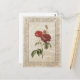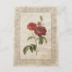 Postal retro con un ilustracion botánico vintage de rosas rojas con un marco embellecido de estilo francés antiguo y textura de papel antiguo desmenuzado. La imagen forma parte de una serie y también está disponible en formato grande.