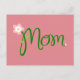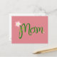 Flores de primavera y hojas pequeñas con el texto "Mamá" se resaltan en un fondo rosado de fresa. Haga clic en "Personalizar" para cambiar el fondo a un color diferente, si lo desea.