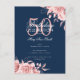 Elegante "Programa de Fiesta de Cumpleaños" con Arreglo Floral en Rosa Oro y Marina con texto personalizado.