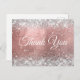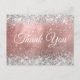 Crea tus propias tarjetas de agradecimiento con purpurina plateada falsa brillante espolvoreada sobre lámina falsa cepillada rosa dorado.