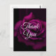 Tarjeta de agradecimiento de fiesta con una imagen de cerca de una rosa magenta púrpura de aspecto gótico. Un estilo oscuro y misterioso.