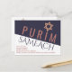 Crea tus propias postales para eventos Purim en este diseño geométrico moderno en azul y blanco con un diseño Magen David / Star of David de color rosa rosa. Desde invitaciones de Purim party a eventos de Sinagoga, el diseño asimétrico mauve rosa, azul marino y blanco y los modernos tipos de letra mixtos le darán más interés a sus envíos de correo. PURIM en un rosa rosado en el azul profundo - Eclipse - la mitad superior está acentuada por el falso rosa purpurina de oro Star of David que sirve como punto por encima de la "i". SAMEACH en un tipo de letra decorativa azul marino en la mitad inferior blanca y nítida de la postal de vacaciones se balancea con el texto malva en la parte inferior izquierda. La parte posterior de estas postales azul, blanco y rosa fiesta Purim tienen espacio para texto adicional para sus detalles de celebración.