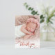 Elegante Rosa de caligrafía de Moda moderna Foto de bebé recién nacido con guión dorado Gracias Postcard. Presenta un hermoso texto de "gracias" en un guión de caligrafía de letra de tipo de letra de tipo de cruz con letra de cruz manuscrita en un Relieve metalizado de imitación de oro rosa rosado. En el reverso un mensaje personal prehecho. Genial para la niña. Fácil de personalizar con la foto y los detalles de su bebé.