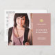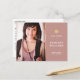 Esta moderna tarjeta postal de invitación de graduación muestra una gran foto y el nombre de tu graduado. El diseño incluye un tapón de graduación dorado, una tipografía blanca moderna y un fondo rosa polvoriento. En la parte posterior, puede agregar un mensaje personal y detalles del fiesta de grado.
