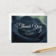 Tarjeta postal de agradecimiento con una fotografía de estilo místico y misterioso. Una sola rosa negra con un ambiente gótico.