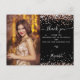 Un fondo negro, decorado con un confetti dorado rosa. Personaliza y agrega tu foto, nota de agradecimiento y nombre. Gracias está escrito con un tipo de letra de gran tamaño con letras a mano con barras.
