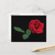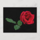 Este elegante poster presenta una exquisita rosa roja escarlata con tres hojas verdes sobre un fondo negro.