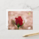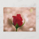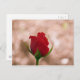 Una sola rosa roja en nuestro jardín. Todavía en brote, lentamente desplegando sus preciosos pétalos de cañón, esperando estallar en flor. Fotografía tomada de su belleza natural. Un solo rosa, la encarnación del amor y el romance.