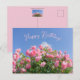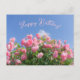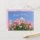 Esta tarjeta postal presenta un arbusto de rosa rosa bajo un cielo azul, un motivo maravilloso para deseos de cumpleaños, para todo amante de las rosas o las flores. Texto y color personalizables en el reverso.