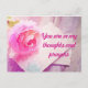 Postales rosa color de agua con una elegante letra de guión que dice "Estás en mis pensamientos y oraciones" para que un amigo o miembro de la familia sepa que estás rezando por ellos. Sería grandioso mandar esta postal por correo a alguien cuando está pasando por algo y no sabes qué decir, pero quieres darles un momento brillante en su día y recordarles que estás rezando activamente por su situación.