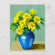 Postal en un ilustracion de arte de Boho de rosas amarillas en un jarrón de cerámica azul