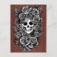 Postal Rosas de cráneo Gótico dibujo original de tinta ar