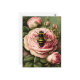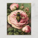 La abeja reina de época y las rosas rosas rosadas con escritura francesa se desvanecen en el fondo.