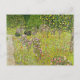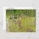 Postal de arte fino con el cuadro, Fruit Garden con Rosas (1911), de Gustav Klimt (1862-1918), artista austriaco del periodo modernista. Un paisaje de jardín rosa con manzanos en el fondo.
