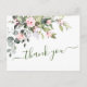 Tarjeta Postal de Agradecimiento de Bodas con Rosas de Eucalipto Rosado.