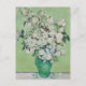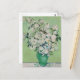 Hermosos Rosas de Van Gogh pintando una postal con un impresionante arte floral con bonitos en un jarrón verde sobre una mesa blanca con rastros de rosa sobre un agradable fondo verde amarillo. Regalo de ramo floral vintage de Guay para un artista admirador del siglo XIX que ama el período impresionista.