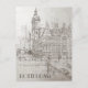Esta postal de viaje, de estilo boceto dibujado a mano, muestra una vista de los edificios históricos de Rotterdam.