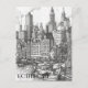 Esta postal de viaje, en forma de boceto dibujado a mano, muestra el horizonte de Rotterdam.