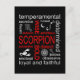 Diseño en nube de etiquetas de Guay que enumera algunos términos de signos de zodiaco con rasgos positivos y negativos de personalidad de Scorpion.