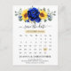 Postal Royal Blue Rustic Sunflower Moderno salva la fecha