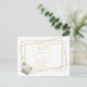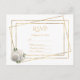 Una tarjeta RSVP blanca y dorada con Rosas Glam blancos y dorados. Coincide con la invitación de boda de Relieve metalizado blanco y dorado del mismo diseño