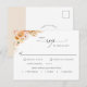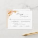 Postal RSVP práctica, moderna y elegante. ¡No hace falta que los clientes rellenen los sobres y envíen sus respuestas! Bonito diseño con detalles florales en una hermosa mezcla de melocotón, naranja, rubor, champán y crema. CON O SIN OPCIONES DE COMIDA. Posibilidad de borrar las opciones de comida y añadir una nota motivadora para los clientes (es decir, "No puedo esperar para verte ahí" o "Espero que puedas lograrlo"). Detalles modernos de caligrafía escrita a mano. De vuelta con rayas en un bonito tono de crema de champán. Parte de nuestra colección "Peach Floral Delight and Cream Champagne" con una variedad de productos de coordinación disponibles. Visita toda la extensión de esta colección en: https://www.zazzle.com/collections/peach_floral_delight_and_cream_champagne-119627301812293761