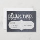 El papel que envía marca el tono de todo el evento que está organizando. ¿Es genial e informal o es elegante McFancy-pantalones? No puedes equivocarte con estas fantásticas postales RSVP de pizarra de inspiración vintage. El texto de los detalles es totalmente personalizable y seguro que impresionará a sus huéspedes.