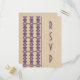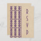 Postal RSVP de elegante y refinada Boda de borde Art Deco con un borde de diseño deco morado sobre un fondo de textura de papel falso. Esta elegante postal de respuesta es una gran elección para un boda moderno. Fácil de personalizar, simplemente agregue los detalles de su boda en los campos de texto proporcionados. Haga clic en "Personalizar" para encontrar más opciones de personalización.