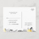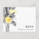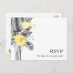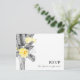 Esta moderna postal de boda tropical RSVP es perfecta para su boda de verano. Diseñado con elegantes y clásicas flores amarillas que salen de la vegetación gris costera, incluyendo la hoja de palma y el helecho. Las flores de color y las hojas grises le dan un toque bohemio a la playa.